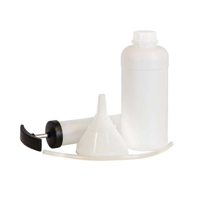 Features: Oil change service kit, makes oil changes a breeze! Ideal for all garden products that feature a four stroke petrol engine. This kit contains a pump and tube which is used to extract the used oil from the engine. Then simply pump the used oil into the supplied container, where it can then be safely disposed of. Finally use the supplied funnel to refill fresh oil to the engine. Makes a messy job easy